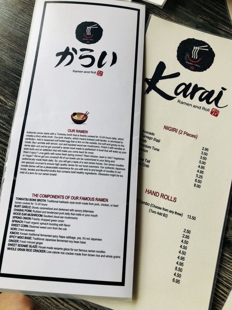 Introducing Karai Ramen + Handroll, a gem in Springfield, MO that offers a delightful Asian culinary journey. This hip and trendy spot serves up delectable ramen and handrolls that are a must-try. The menu includes options for soy-free, vegan, and vegetarians, making it inclusive for all diners. Customers rave about the flavorful dishes, such as the Old Skool Ramen and the oh my god roll. The service is top-notch, with attentive staff ensuring a memorable dining experience. The serene ambiance and consistent quality make it a go-to for lunch or dinner. Don't miss out on the signature Karai bowl for a fiery culinary adventure or the handrolls for a crunchy and delicious treat. Karai Ramen + Handroll is a must-visit for those seeking exceptional Asian cuisine.